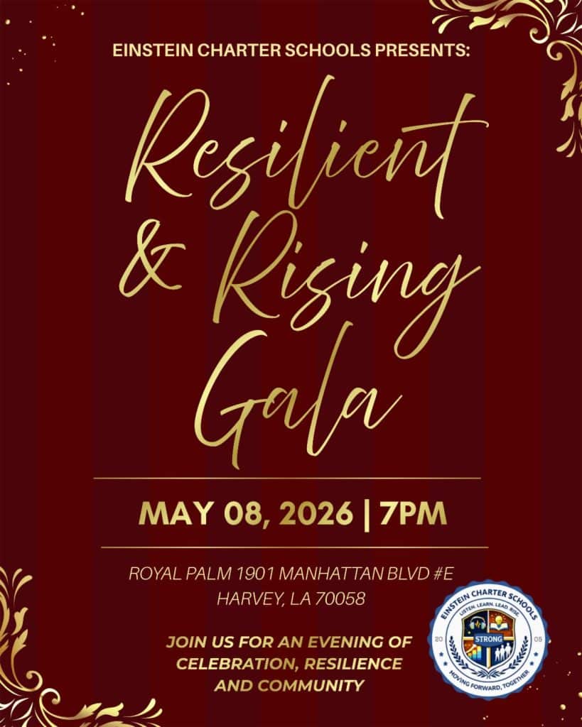 NEW ORLEANS, LA — Einstein Charter Schools will host its “Resilient & Rising” Gala on Friday, May 8, 2026, from 7:00 p.m. to 11:00 p.m. at Royal Palm, 1901 Manhattan Blvd. #E in Harvey.The evening will bring together business leaders, civic partners, educators, and families from across the Greater New Orleans area to celebrate student success and support educational opportunities across the Einstein network.Proceeds from the gala will benefit Einstein’s Student Uniform Access Initiative, which helps ensure students across the network have access to required school uniforms so they can start the year prepared, confident, and ready to learn.“School uniforms are an important part of helping students feel a sense of belonging and pride in their school community,” said Nicholas Bijou, Interim CEO of Einstein Charter Schools. “Through this initiative, we are working to remove barriers for families and make sure every student has the essentials they need to show up ready to succeed.”Guests will enjoy live entertainment from Rechell Cook, Royal Essence, DJ Captain Charles, and Partners-N-Crime. The event will also offer opportunities for community members and partners to invest directly in student success.Tickets are $125 and are available for purchase in advance. For more information or to purchase tickets, please visit: https://events.eventnoire.com/e/einstein-charter-schools-presents-resilient-risi-2